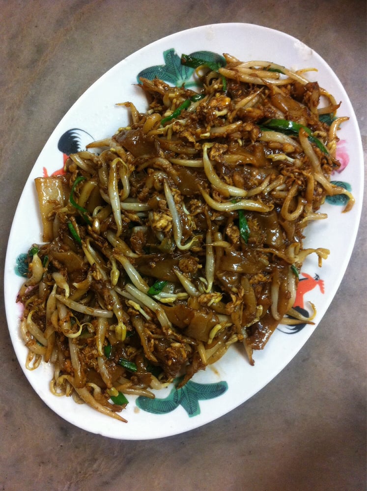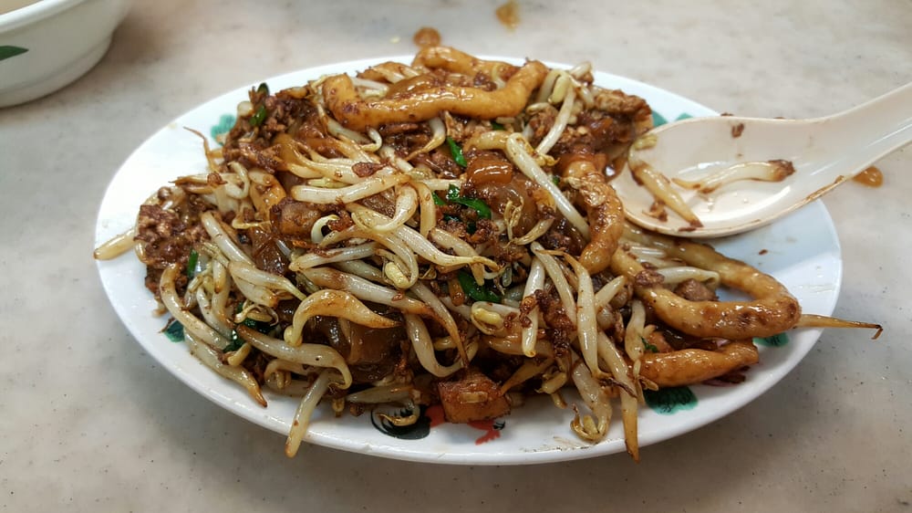 Crispy fried fish served over delicate noodles, accompanied by silky steamed rice rolls.